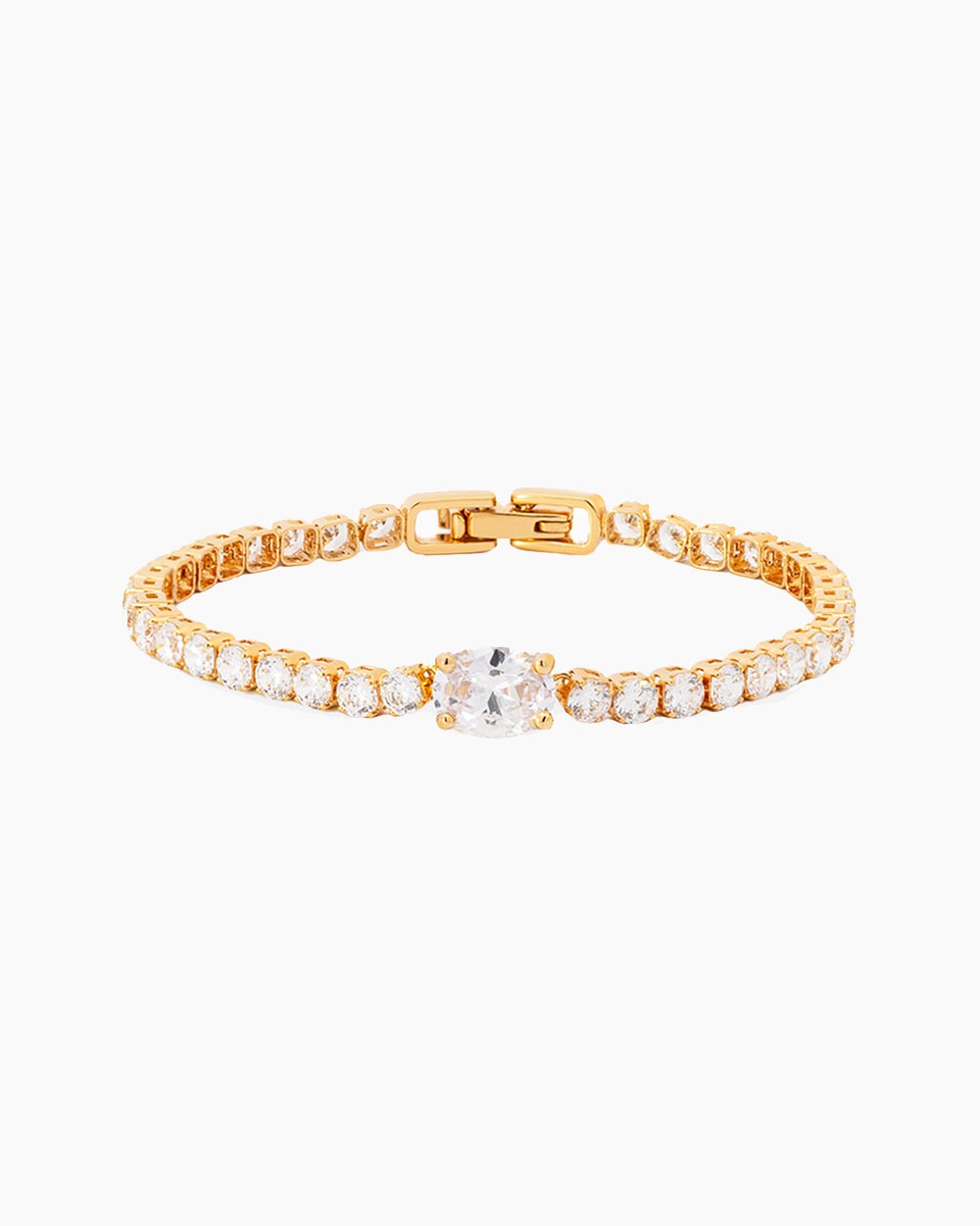 An exquisite combination of an oval-cut stone and a classic tennis chain style. Whether you’re headed to a fancy dinner or a casual link up, let your light shine with the Adeline Bracelet.