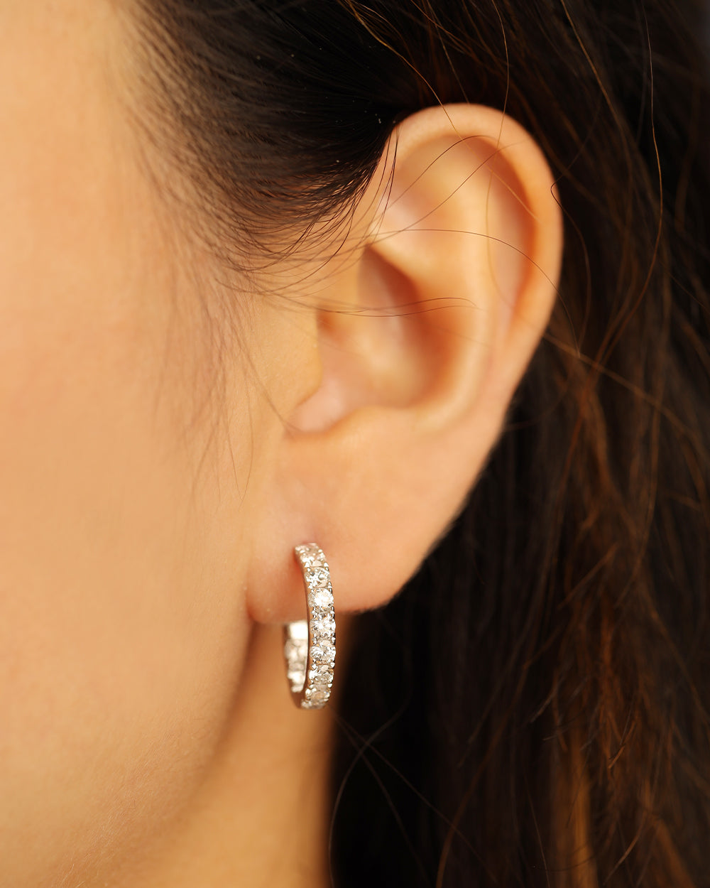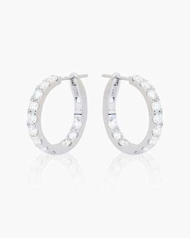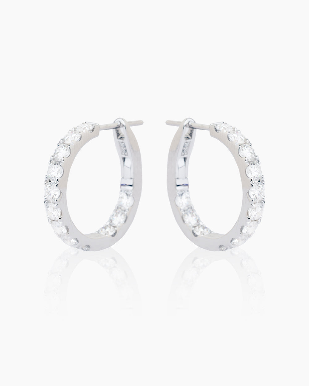 Bold white gold eternity hoops featuring pavé-set lab-grown diamonds. Secured with a precise hinge-lock closure.