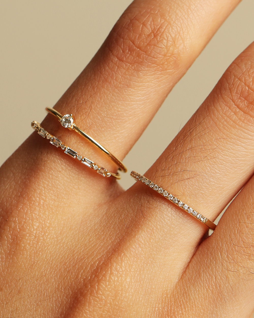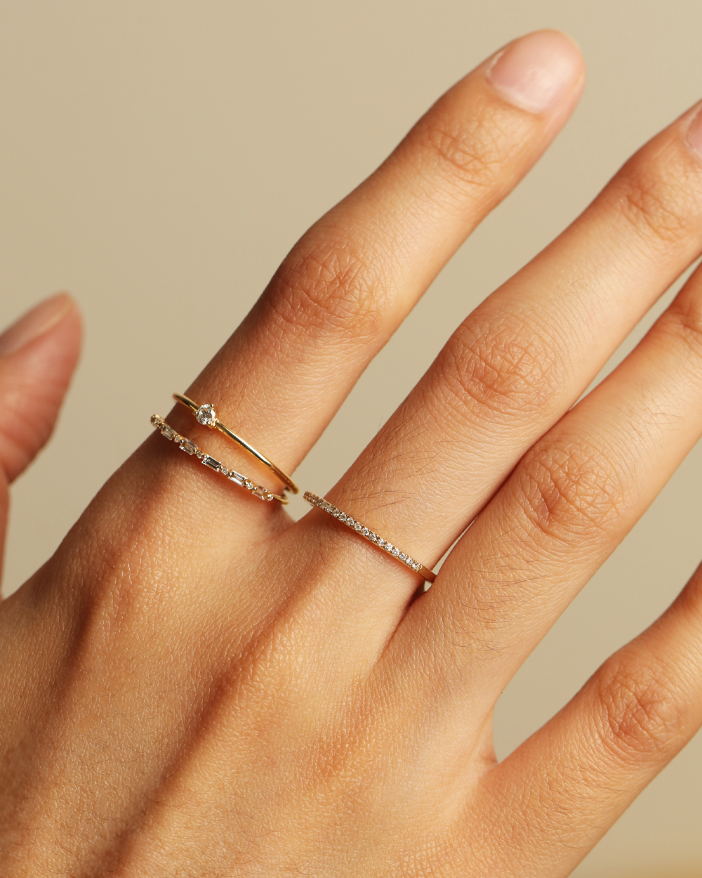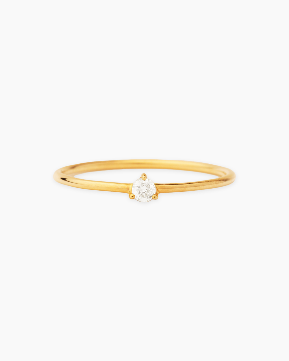 A solid gold band with a dainty solitaire diamond, the Amira Diamond Ring is a daily wear design made to elevate your everyday moments.