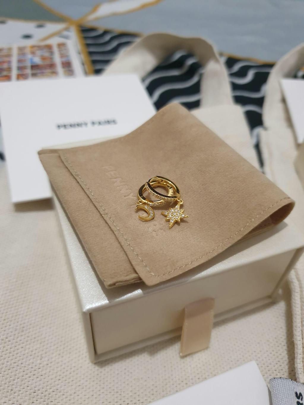 Store your jewelry individually and avoid exposing them to liquid and cosmetics. Extreme heat and humidity might cause gold plated jewelry to tarnish, keep your pieces in a dark, cool and dry place to avoid this. Our best advice would be: wear your pair often (this helps lessen oxidation), and keep them in your Penny Pairs pouch when not in use.