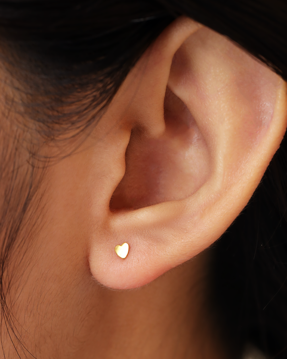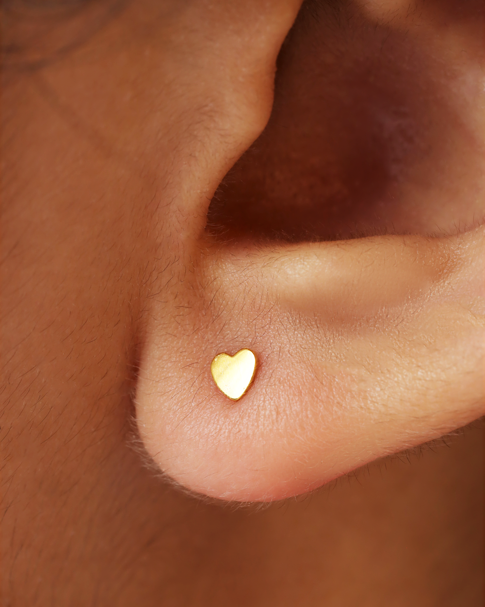 The Sam Flatback Studs feature a dainty, solid heart design on a comfortable flatback post. These charming studs offer a minimalist touch of love to your ear stack, perfect for everyday wear in any piercing.