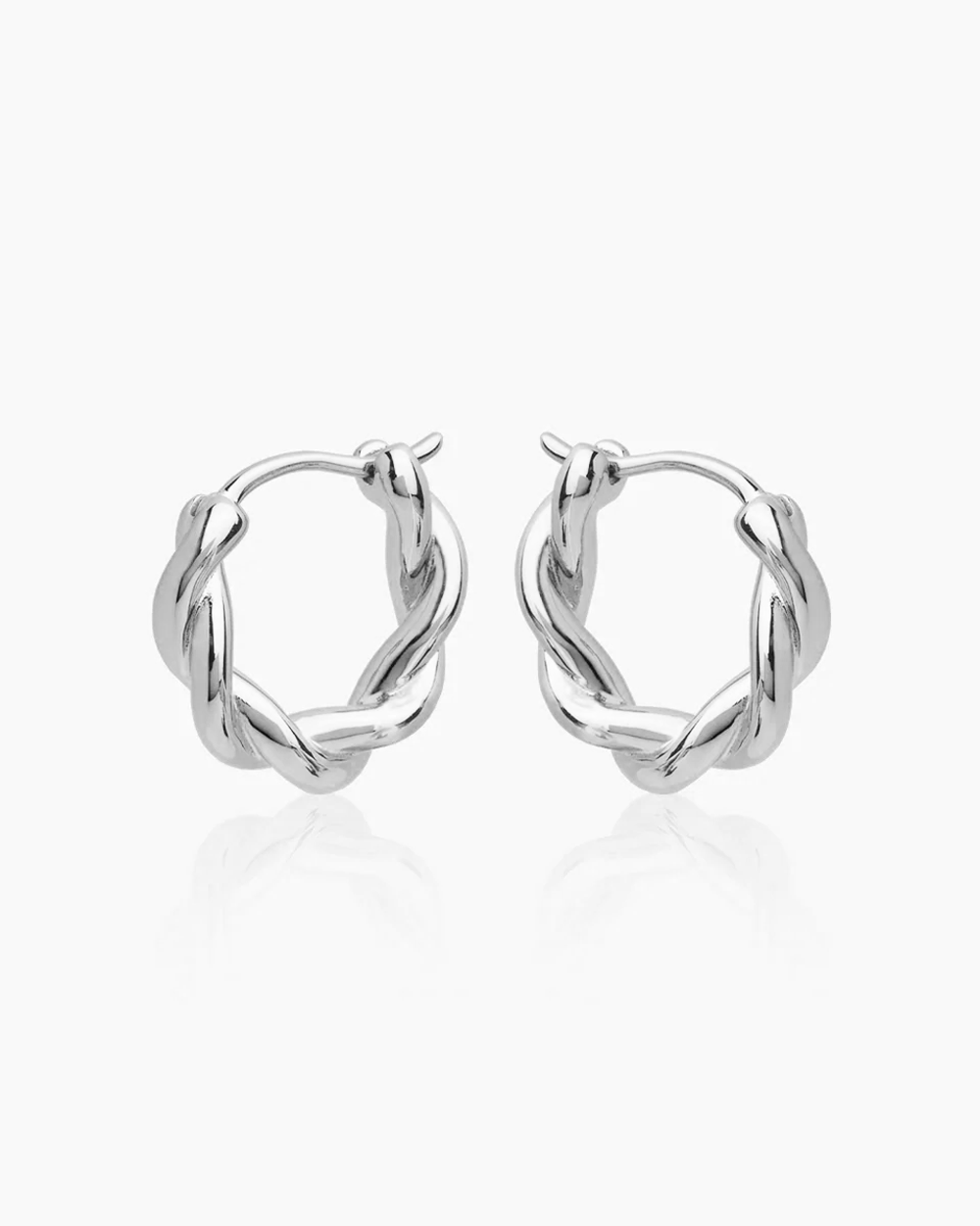 The Tilda Silver Hoops feature a distinctive twisted design for a unique and eye-catching texture. These mid-sized hoops offer a modern twist on a classic style, providing versatile elegance that transitions effortlessly from day to night.