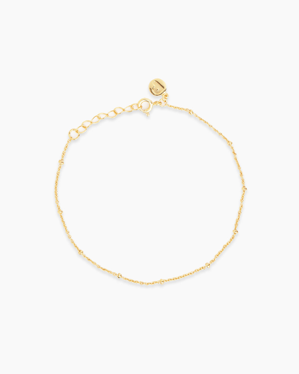 For those who love a bit of playful texture, the Bobby Gold Bracelet is a dream. This delicate bobble chain features tiny gold beads along a fine chain that catch the light from every angle. It's the perfect dainty accent for a curated wrist.