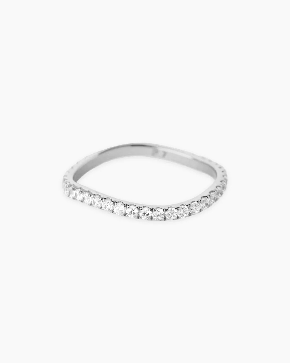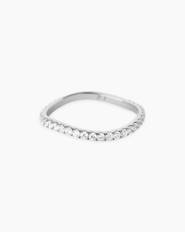 The Wendy Silver Ring is a delicate curved gold band ring paved with cubic zirconia crystals. A graceful and elegant piece, this ring is set to add a touch of femininity to your looks.