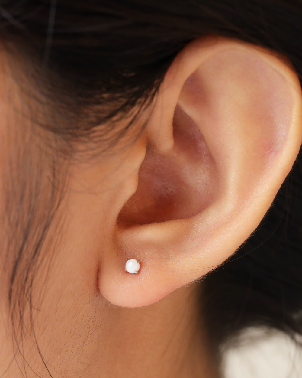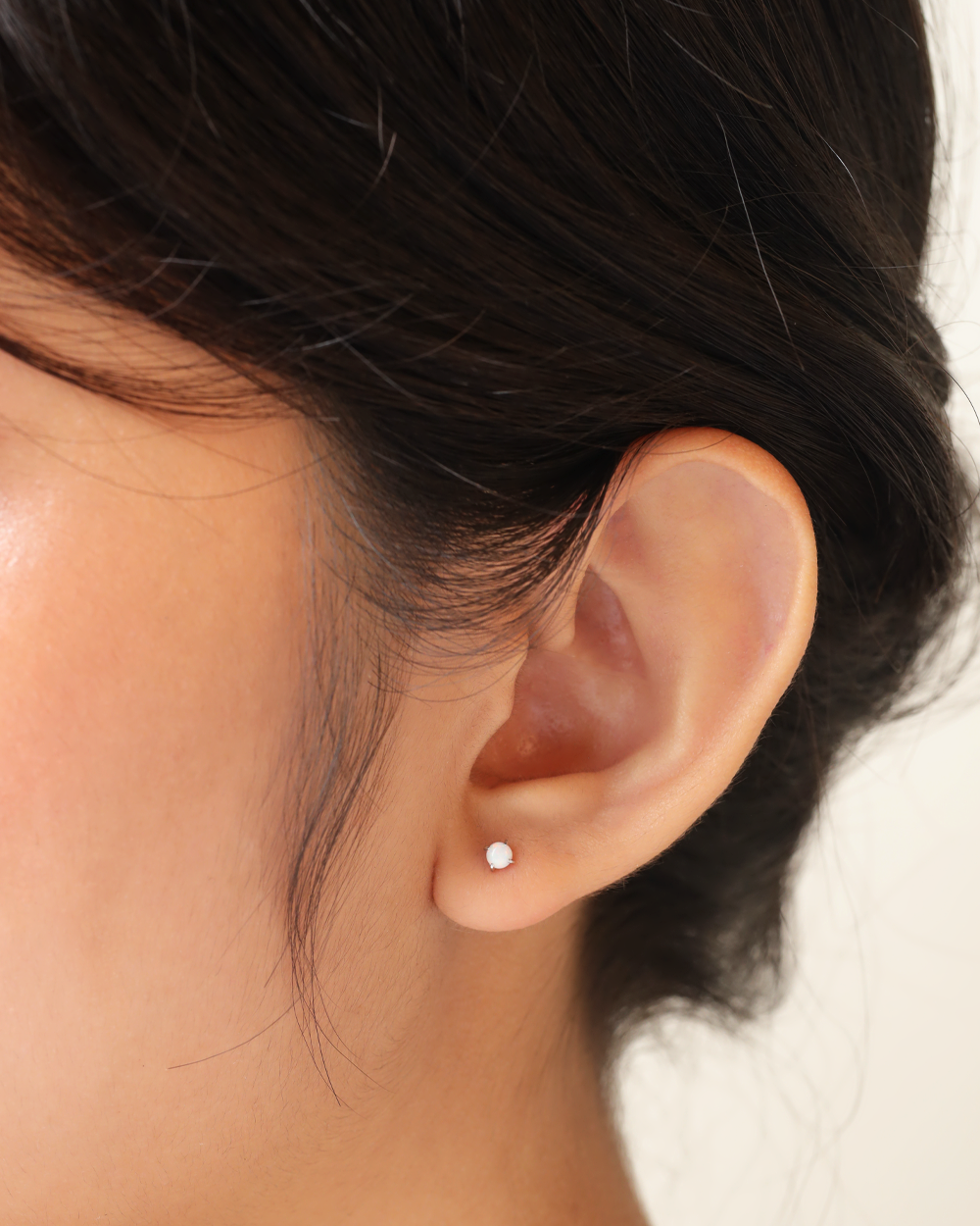 The Mel Flatback Studs feature a beautiful lab grown opal in a prong setting, secured with a comfortable flatback post. These unique studs catch the light with iridescent flashes, adding a touch of color and magic to your ear stack. Available in both gold and silver finishes.