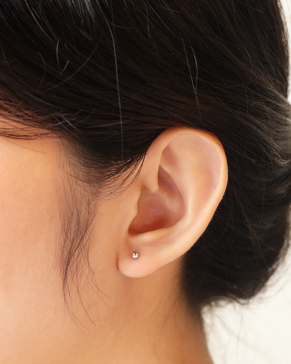 The Mon Flatback Studs offer a clean, classic look with a simple sphere design on a comfortable flatback post. These versatile studs are perfect for adding a touch of understated elegance to any piercing, whether worn alone or as part of a stack. Available in both gold and silver finishes.