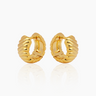 The Gela Gold Huggies boast a bold, cushioned ridge design for high-impact texture and shine. These chunky huggies offer a luxurious, ribbed aesthetic that elevates your daily look and makes them a perfect centerpiece for your curated ear.