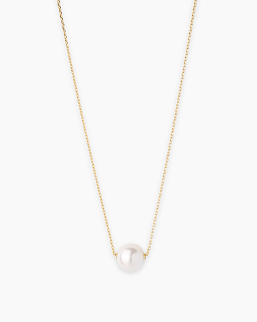 The Marianne Gold Necklace is a minimalist and elegant piece featuring a single natural shell pearl pendant. The simple gold chain and the shimmering pearl create a timeless and versatile look.
