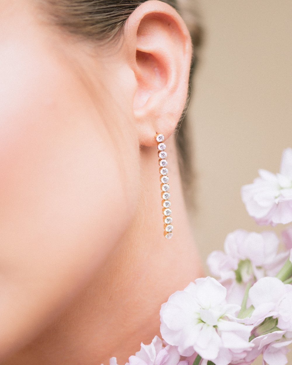 The Marlene Studs offer a touch of glam with their tennis chain inspired aesthetic. Perfect for the events that ask you to up your style game, these babies will bring luxury to your life.